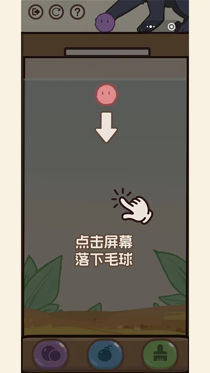 1. 进入游戏后,轻轻点击屏幕的任意一处,毛茸茸的猫猫球便会朝着你点击的方向掉落哦!