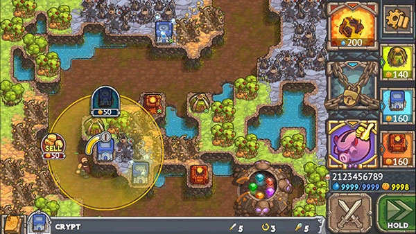 《被诅咒的宝藏2》手机版最具特色之处,在于融入了类似《魔兽争霸》的运营理念。我们在建造防御塔的过程中,能够选择金矿、城市等建筑来生产金币供自己使用,这使得游戏策略更加丰富多样。像塔流、发育流等玩法,都很值得思考尝试。