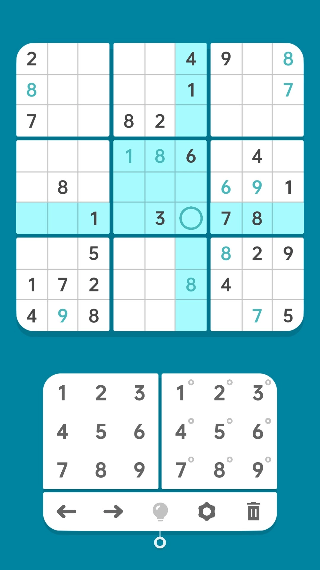 经典数独玩法:给出标准的9×9格数独题目,严格依照传统数独规则,让玩家能够尽情体验原汁原味的逻辑推理乐趣。