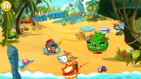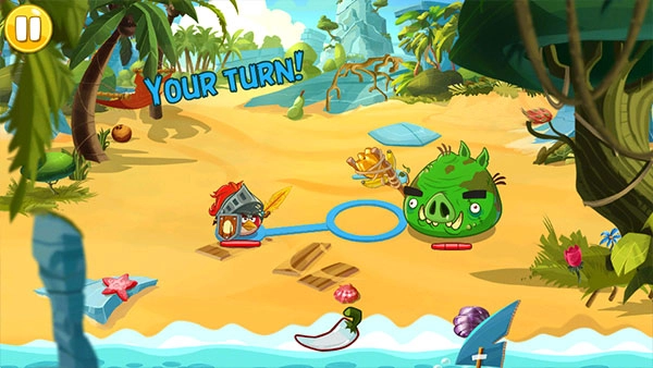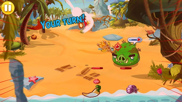 这是“愤怒的小鸟”系列IP里极具特色的一款策略回合制战斗游戏。它在经典弹射玩法的根基上,融入了战斗与回合制动作。玩家只需点击屏幕,就能操控小鸟们向绿色猪头发起攻击,进而持续取得胜利。