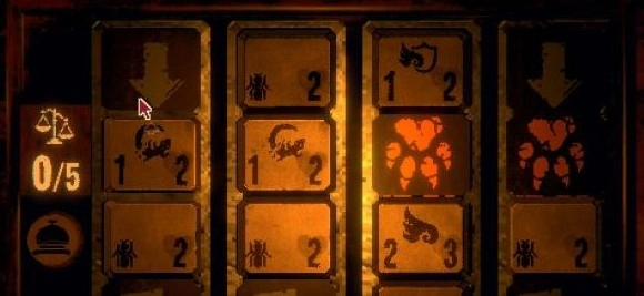 解谜方式:对所有造物的位置进行调整,前三个抽屉放置卡牌,第四个抽屉放置雕塑,借助工具书便可解决。