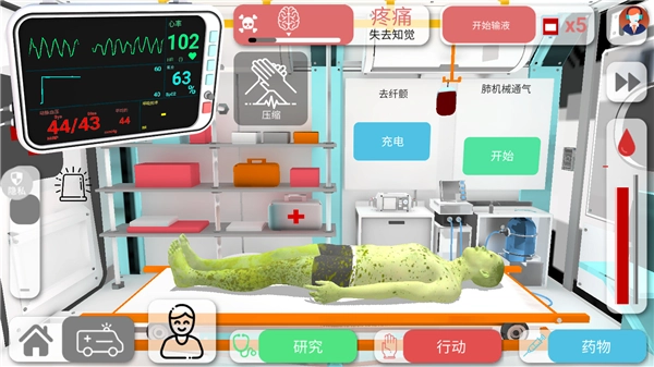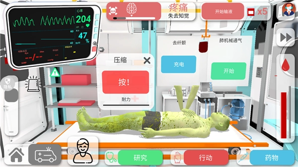 1、手术中,玩家要根据病人不同情况选择合适治疗方案。