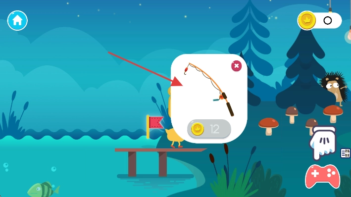 1、在码头场景的弹窗中,点击展示的钓鱼竿图标(标价12金币),消耗对应金币购买钓鱼竿,解锁钓鱼玩法。