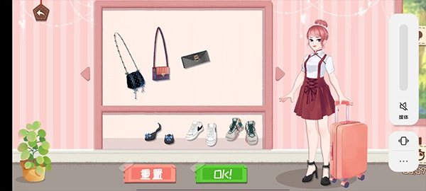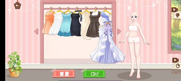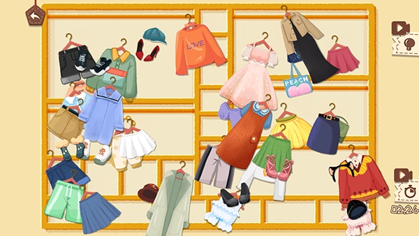 4、当进入服装搭配关卡后,为角色挑选并换上美观的造型。在操作过程中,若想查看下一页的服装与饰品,只需点击衣架旁边的箭头即可。