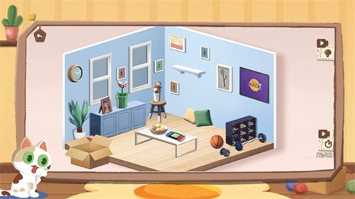 2、可爱的猫咪会在整理过程中出现,给予玩家解题通关的小提示。