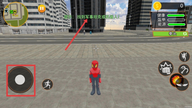 2、通过左侧摇杆操控移动,依据提示寻找军事坦克或机器人。过程中要留意小地图及相关提示,合理规划行进路线,从而快速锁定目标。