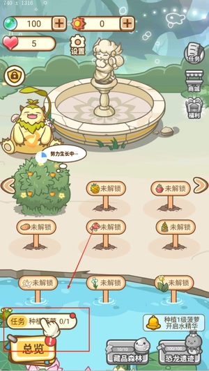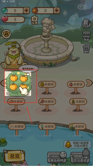 2、点击即可完成播种、浇水、收获等操作,滑动屏幕便能查看整个庄园的布局状况。