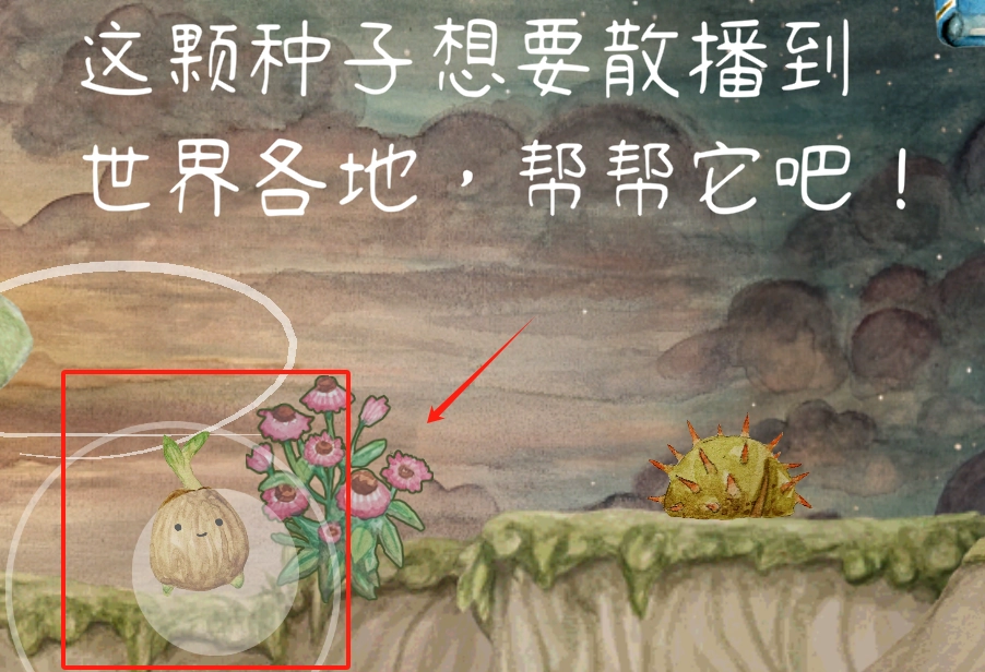 1、选择心仪种子开启冒险之旅,滑动屏幕控制移动方向,寻找最佳发芽位置。