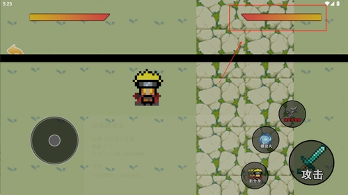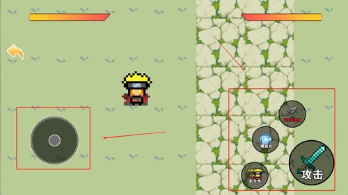 2、左边是虚拟摇杆控制移动,右边是攻击与技能按钮,底部则是连招提示与血量显示区域。