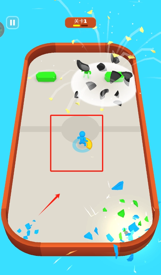 1. 进入关卡后,通过拖动操控杆来调整投掷角度,随后松手释放圆饼,使其撞击对手的防御工事,当成功清除目标后,即可顺利过关。