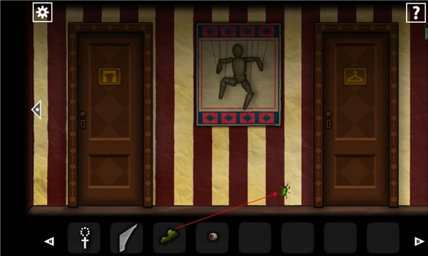 6、出来后往右边走,走到墙上有一只甲虫的地方,点击这只甲虫尝试捕捉。不过,在此处无法直接捕获这只甲虫。需先把之前在餐盘上发现的黏糊糊的东西放上去,甲虫就会被粘住,如此才能成功获取。