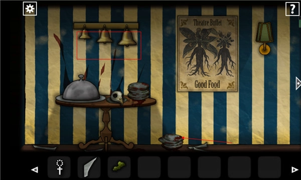 5、按照213112的顺序点击上面的这个铃铛,随后下方的餐盘便会打开,从中能够获取一个眼球。