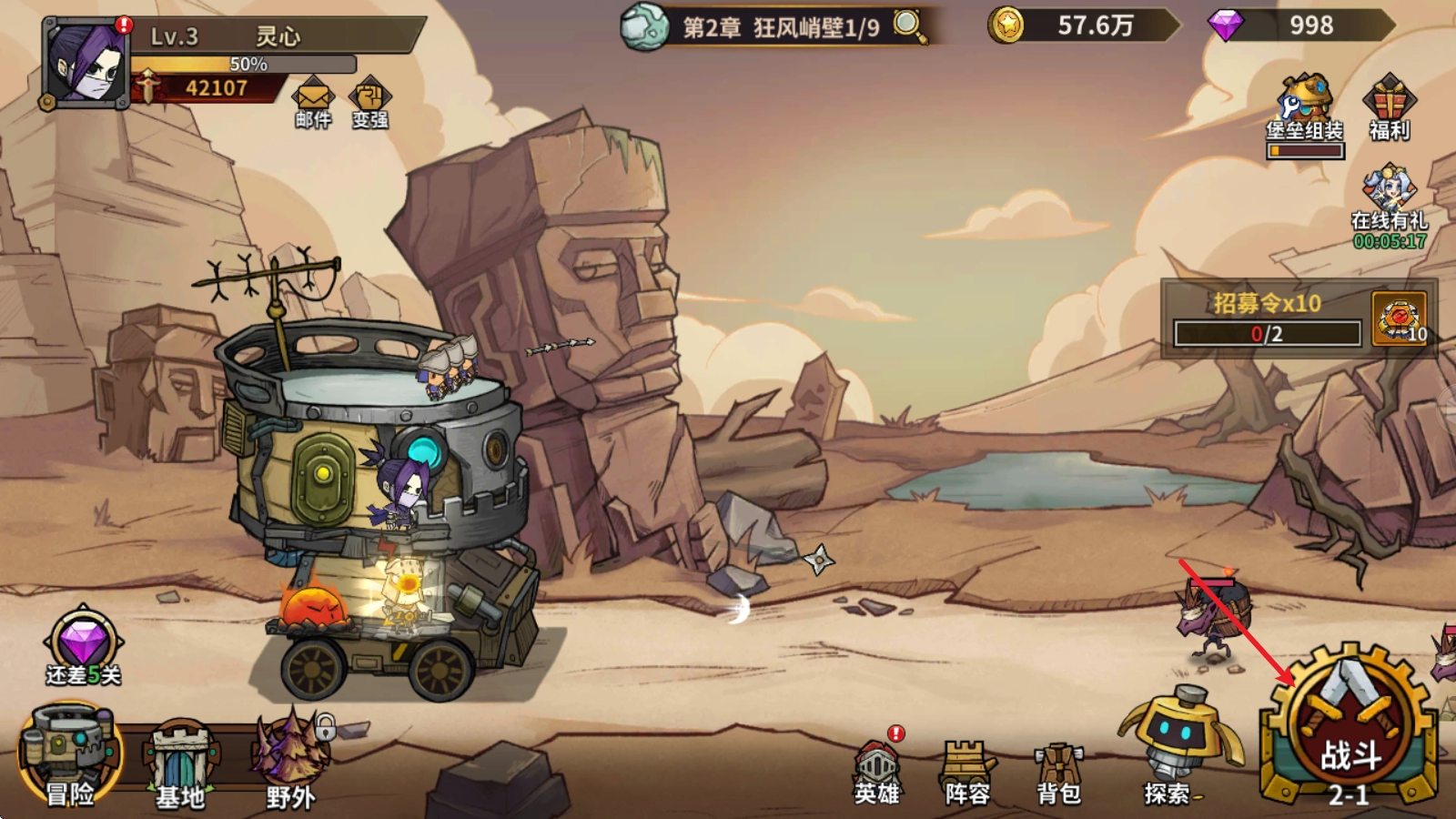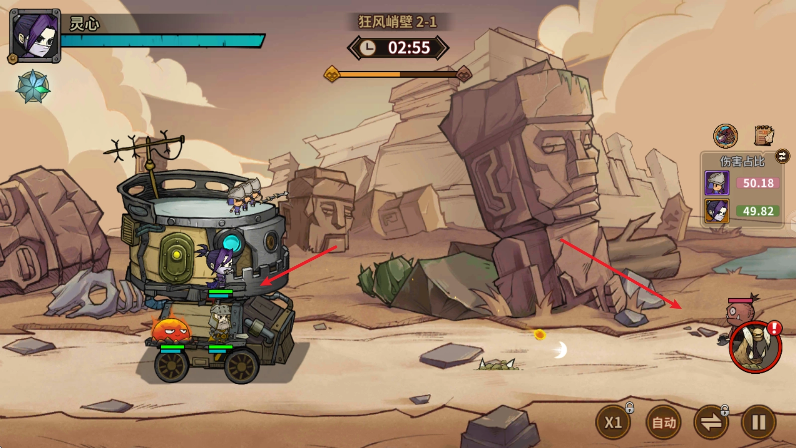 2、战斗开始后,堡垒上的英雄们就会自动攻击,并增长自己的怒气值。