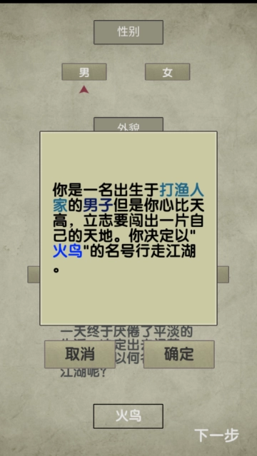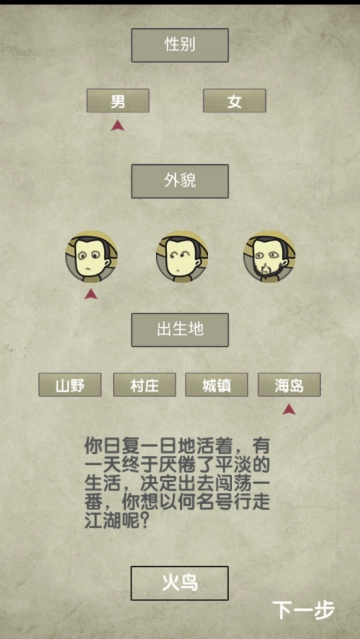 2、武林游戏画面简洁美观且空灵,剧情故事精彩有趣。在这里,你能够自由选择性别、设定昵称,进而创建角色。