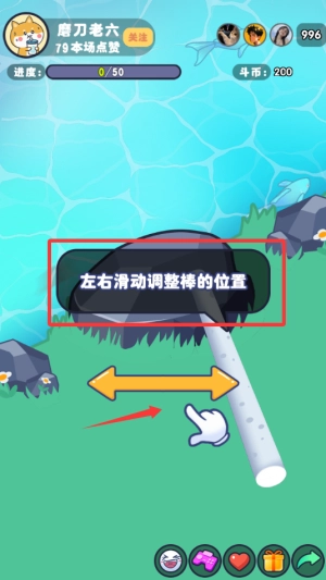 2、根据游戏指引,左右滑动屏幕可以调整棒的位置。