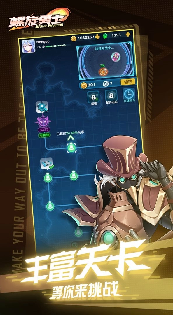 3无需手动操作,每30秒一场的自动战斗,让你的双手彻底解放,无论何时何地,都能即刻快速开战。唯有合理挑选配件,用心进行排兵布阵,才能够成为真正的螺旋勇士。