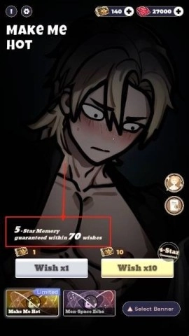 1、踏入游戏后,首先看到的是一个布局与恋与深空抽卡界面极为相像的画面。要留意,这里70抽就必定能获得五星,千万别错过这个机会!