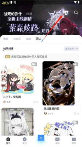 3、在库街区社区,用户能够交流创作,分享游戏体验、玩法心得及其他动态。例如创作同人插画、漫画或同人文并分享。帖子发布格式极为自由,无论是图文、纯文,甚至表情包(库街区内提供了大量表情包素材,可直接使用)都可以。