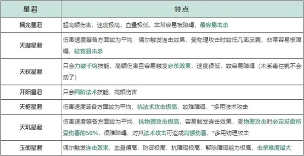 击杀难度排序为:玉衡的击杀难度远高于天玑,天玑的击杀难度高于天枢,天枢的击杀难度高于天权,天权的击杀难度与开阳相近,开阳的击杀难度高于天璇,天璇的击杀难度高于摇光 。