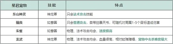 上古四大神兽分别为:东山神灵(青龙)、疆良(白虎),以及朱雀和玄武。它们能够施展天生技能神龙罩或者如意圈,还有普通攻击技能、五系二阶法术技能以及四阶法术技能(包含降魔斩、修罗术)。一般在第1回合且自身无状态的情况下,会释放圈或者罩子。要是星君倒地,它们会优先为星君恢复大约50%的血量。随着挑战层数的增加,其伤害、速度以及防御也会逐步提升。