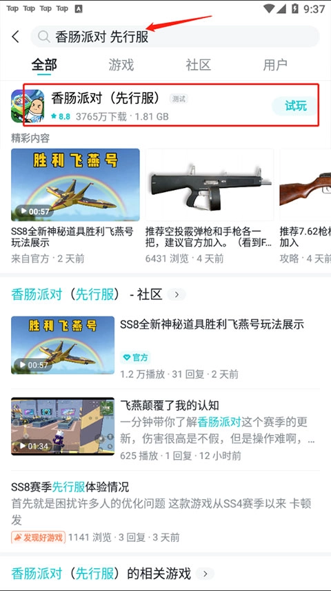 1. 第一步,打开taptap,在其首页进行“香肠派对”的搜索。