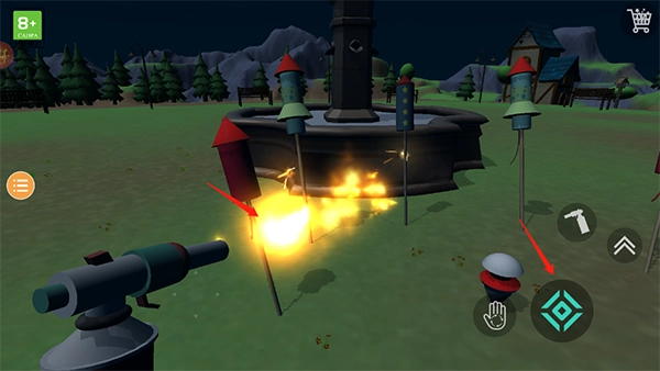 5、点击启动按钮即可开火,随后通过滑动屏幕来控制喷火方向,进而点燃烟花。