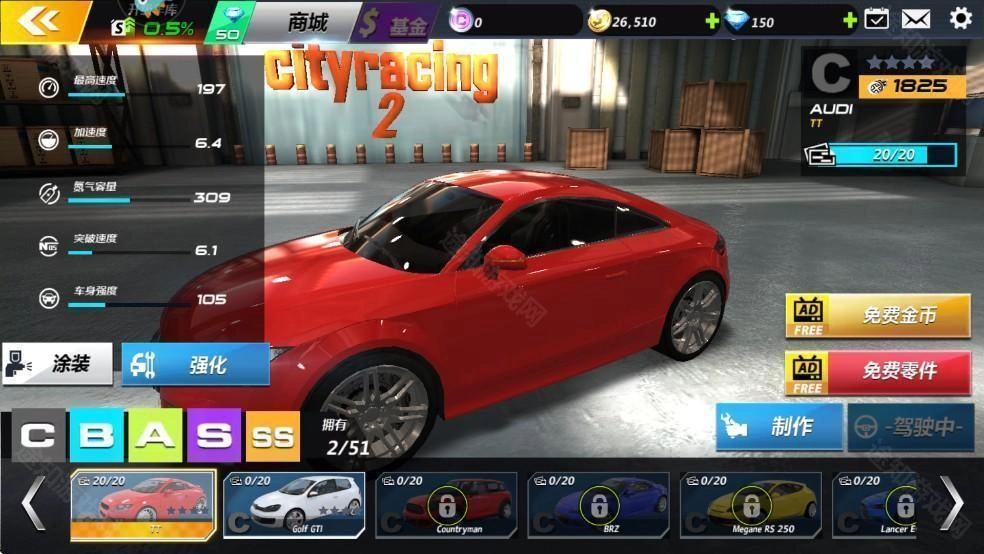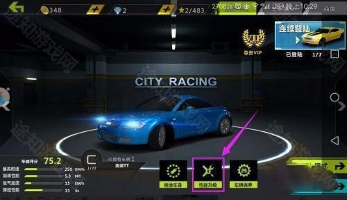 1、玩《城市飞车2》生涯模式前,记得对车辆进行性能升级。只有完成性能升级,我们在生涯模式中才能取得好成绩。