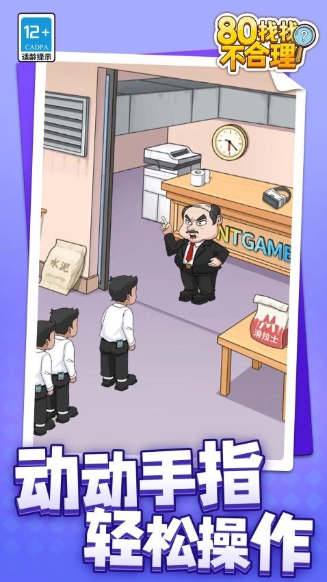 80找找不合理,是一款画面清新精致的休闲闯关游戏。它主要围绕找茬玩法设计,众多关卡与玩法模式皆以找茬观察为主题。每个关卡都有独特的区域场景,供玩家尝试各类挑战。玩家随意点击,就能体验多种不同玩法,收获丰富奖励,还能轻松点击获取各种道具。在游戏后期,可借助道具迅速达成各方面目标,从而轻松体验不一样的玩法内容。游戏中设置了多种障碍诱导玩家反复观察判断,玩家需准确判断所有诱导信息,迅速推进闯关,以最大程度提高整体效率,完成关卡挑战。喜欢这类游戏的朋友,快来体验试试吧,绝对精彩有趣。