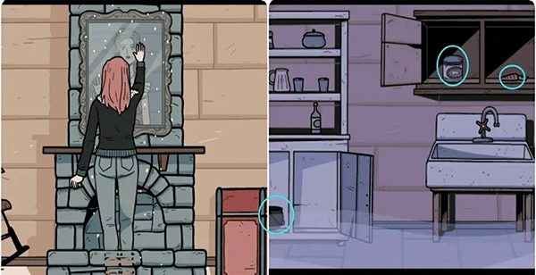 7、把宝石镶嵌进画框下方的凹槽,进入后面的世界。随后与梅里迪亚交谈领取任务,紧接着前往盥洗室寻找道具,拿到坩埚、鱼罐头以及胡萝卜。