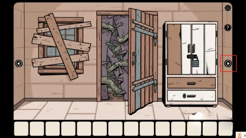 接下来进行第二步,连续点击右侧箭头两次,便可进入第二个房间。随后点击房门,即可进入该房间。
