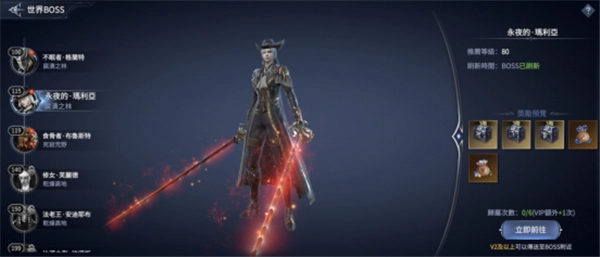 首日开放3只世界BOSS,分别为100级的食骨者·布鲁斯特、105级的不眠者·格兰特以及110级的永夜的·玛利亚。