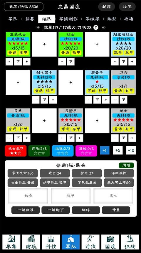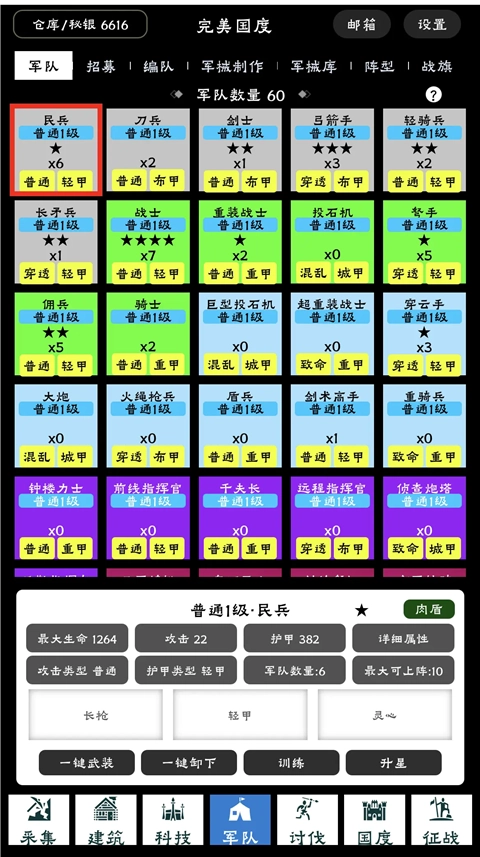 此刻科技已研发出绿兵,能够购置绿战士、重战士,以及白色剑士与弓箭手。