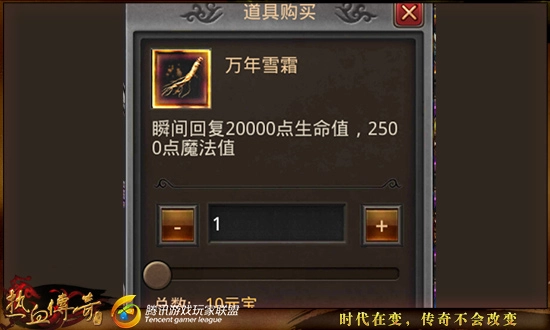 在礼券商店里,这个道具对应的是太阳水。太阳水一次能为你增加6000点生命值。相比之下,万年雪霜就更为出色,它一次可增加2万点生命值。要是说太阳水只是看着不错但实际作用有限,那万年雪霜绝对是货真价实的PK神器。万年雪霜售价十元宝,在诸如沙巴克、战队赛这类重要活动中使用,更为合适。