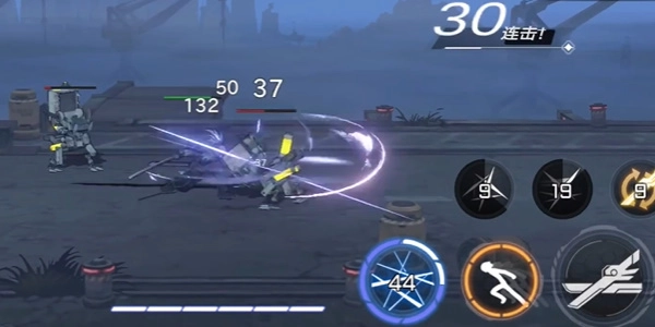 5、最后这两个机器人相对难打一些,直接把它们聚拢到一块儿,一起连招就会好打很多,别让它们一个站一边。