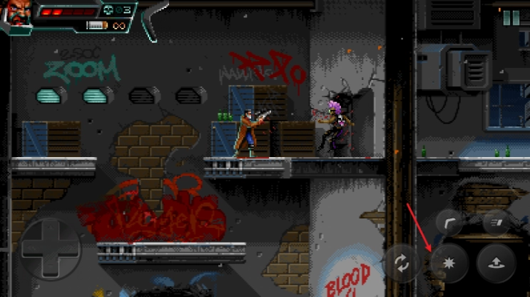 4、当靠近敌人之后,点击右侧的按钮就能开枪,而上方的飞镖按钮则可用来发射飞镖。