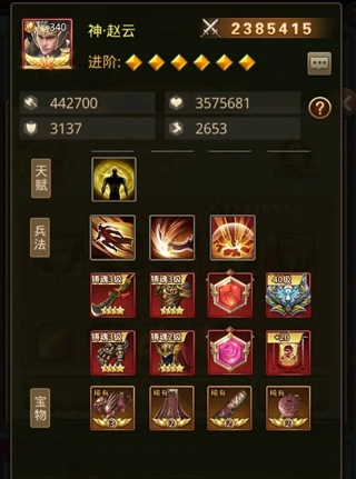 【解析】直接将神赵的输出拉到极致,满屏幕都是暴击、爆伤以及暴追。只要能让神赵云在一回合内打出暴击,瞬间秒掉对方一个前排毫无压力。即便对方攻击我,也无需畏惧,中级嗜血能在一定程度上弥补坦度方面的不足,总之全力提升输出就好,毕竟进攻才是最佳的防守策略。不过,这神赵舍弃了防御能力,若想将其特点发挥到极致,可采用四保一的阵容,依靠其他队友给予一定的防御支持,否则太脆就是个难以忽视的缺点。