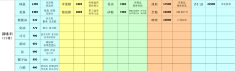 8、调味品(总计17种)