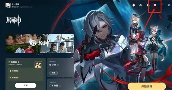 1. 开启云原神启动程序,轻点游戏界面右上角的“设置”按键。