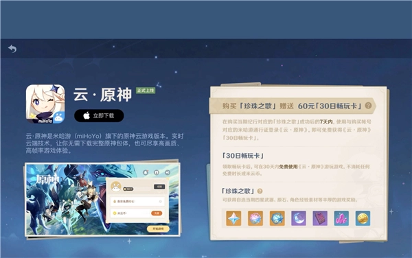 云原神是米哈游为《原神》打造的云游戏版本,运用实时云端技术,玩家即便未下载完整的《原神》游戏包体,也能畅享高画质、高帧率的游戏过程。不过,它对网络环境要求较为严苛,建议通过WiFi连接来体验。此外,游戏账号是互通的,玩家直接使用米哈游通行证登录就行。