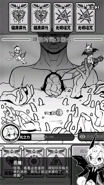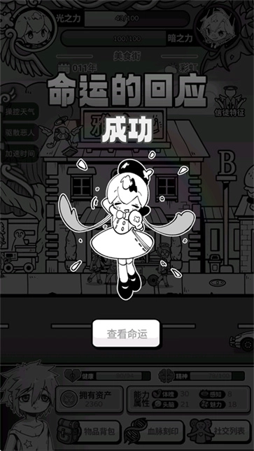 天使模拟器中文版,是一款玩法充满趣味的全新文字题材策略卡牌模拟游戏。其独特的黑白漫画卡通画风,会给你带来与众不同的视觉感受。在最新的天使模拟器中文手机版游戏中,你扮演一名刚被分配到天界救赎部的天使,主要任务是为那些命格极差、倒霉短命的人提供庇护,确保他们能够活得更久。