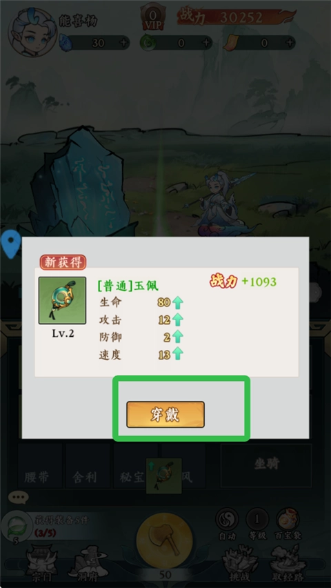 2. 获取新装备后,点击进行穿戴。