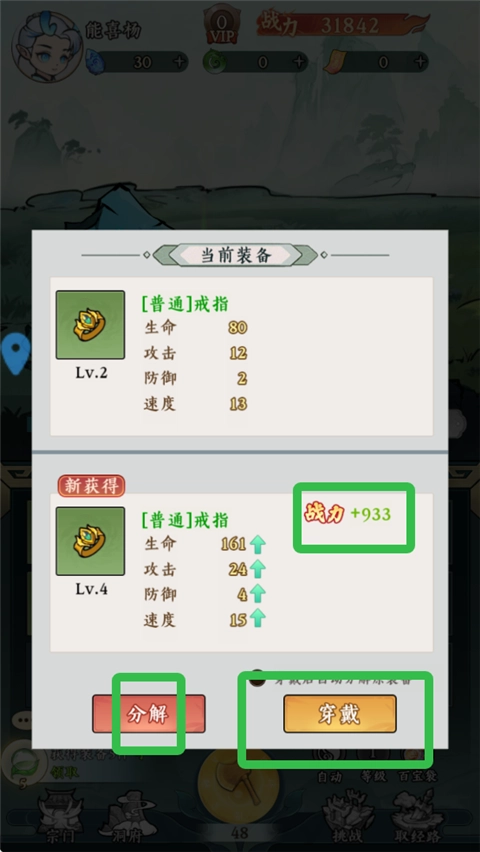 3、获取更高级别的装备,用其替换现有装备,并将低级装备进行分解。