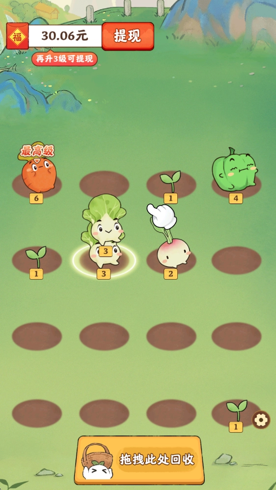 2. 把相同的作物拖动到一起,使其重叠,就能完成合成,从而得到更高级别的作物。