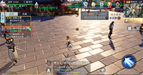 5、当所有教学任务完成后,便要通过每日活动来获取经验。目前仅解锁了三个活动,分别是:同业委托、巡航舰队、扬帆仪式。