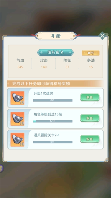 5、点击下方的手册,你也可以接取指定任务来获取称号。