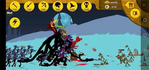 2、若拥有足够的矿石,便可点击攻击类火柴人,派遣它们前去摧毁敌人的基地。