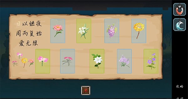 8、留意花图左侧的图案,其在白天和黑夜呈现出不一样的状态。把白天所显示的花放置到黄色格子当中,把黑夜所显示的花放置到蓝色格子当中,如此便能获取种子。