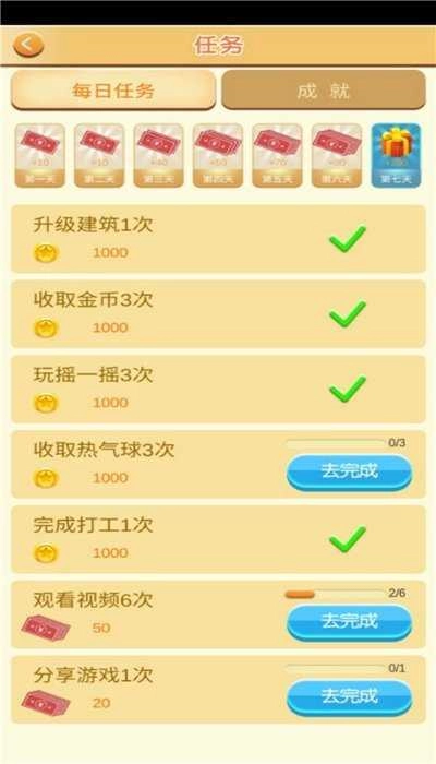 3、这款游戏玩法简单又有趣,玩家只需持续盖楼就行,操作简便,轻松上手。游戏中设有多种任务可供玩家完成,完成任务后还能领取丰厚的红包奖励,而且完成的任务越多,获得的红包奖励就越丰厚。感兴趣的小伙伴不妨来试试,真的特别好玩。