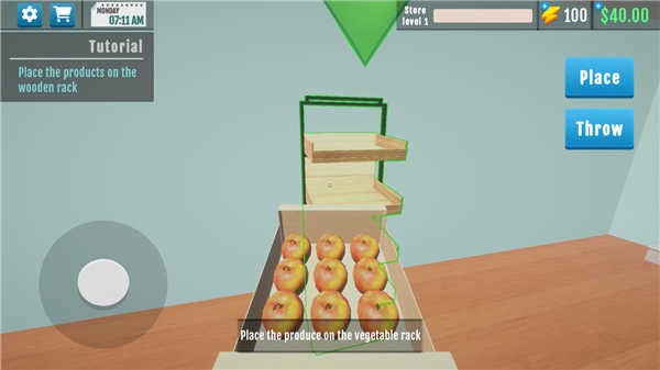 4、接着走到货架旁,点击货架,把苹果放置在上面。