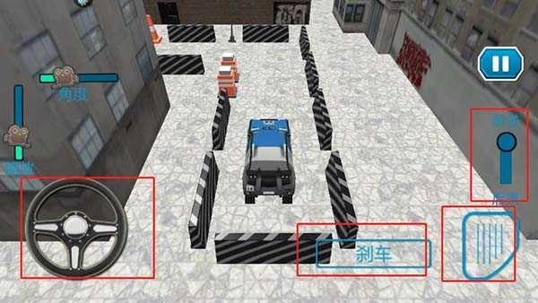 4、进入关卡后,首先熟悉一下游戏的操控按键,包括方向盘、刹车、离合、前进后退档,此外还有缩放和角度调节功能,方便你观察细节。